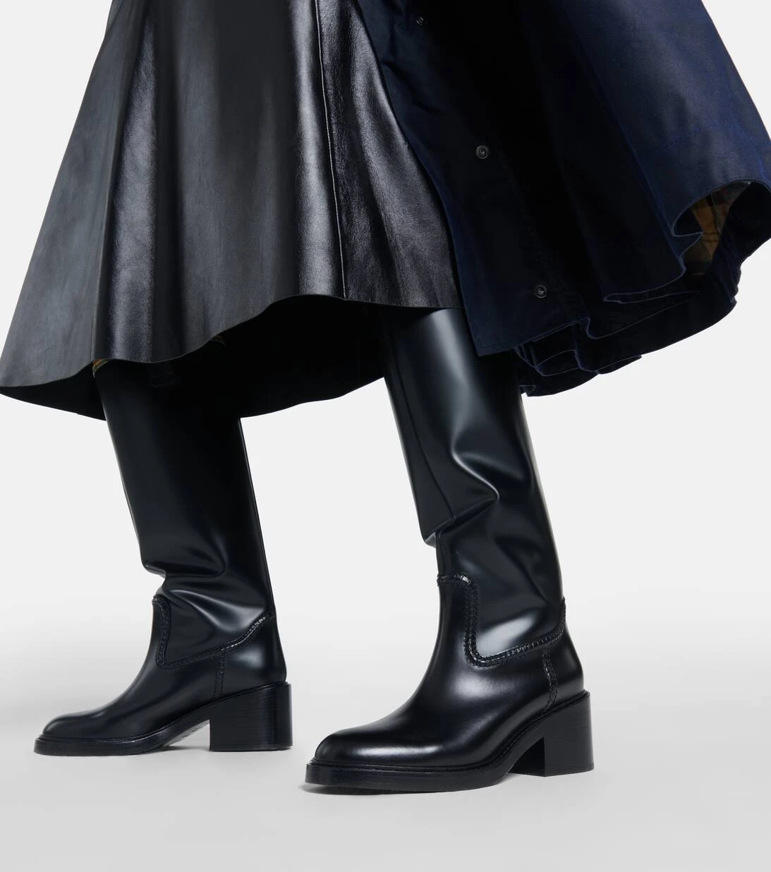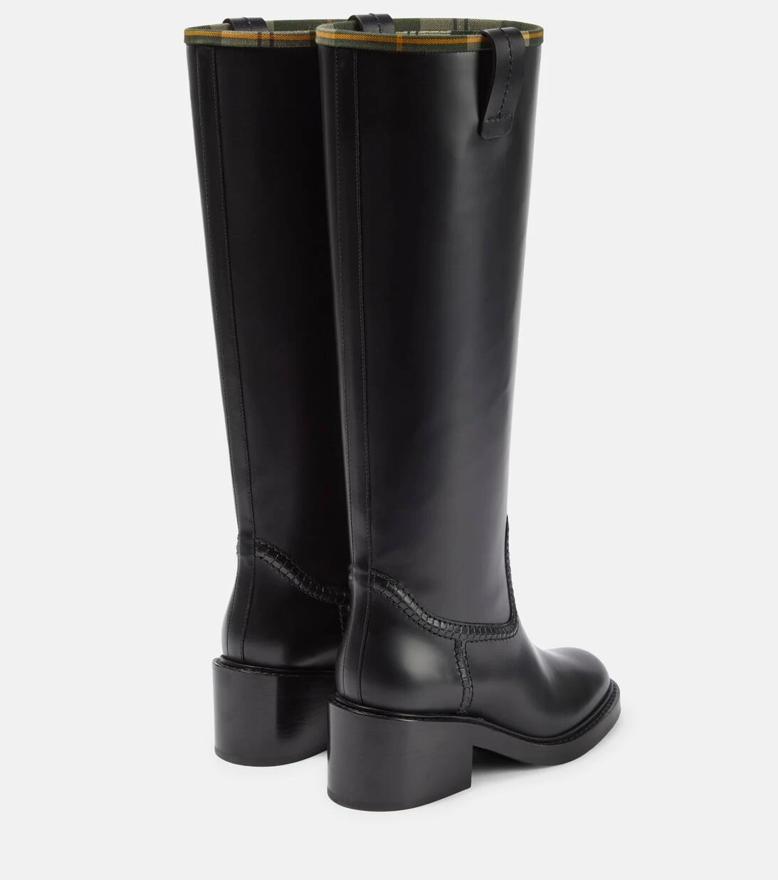 Diese kniehohen Stiefel aus der Kollaboration von Chloé mit Barbour wurden aus glattem Leder gefertigt. Das Modell erinnert an klassische Reit-Designs und verfügt über Zuglaschen, eine runde Zehenpartie, niedrige Blockabsätze sowie einen karierten Futterstoff.
