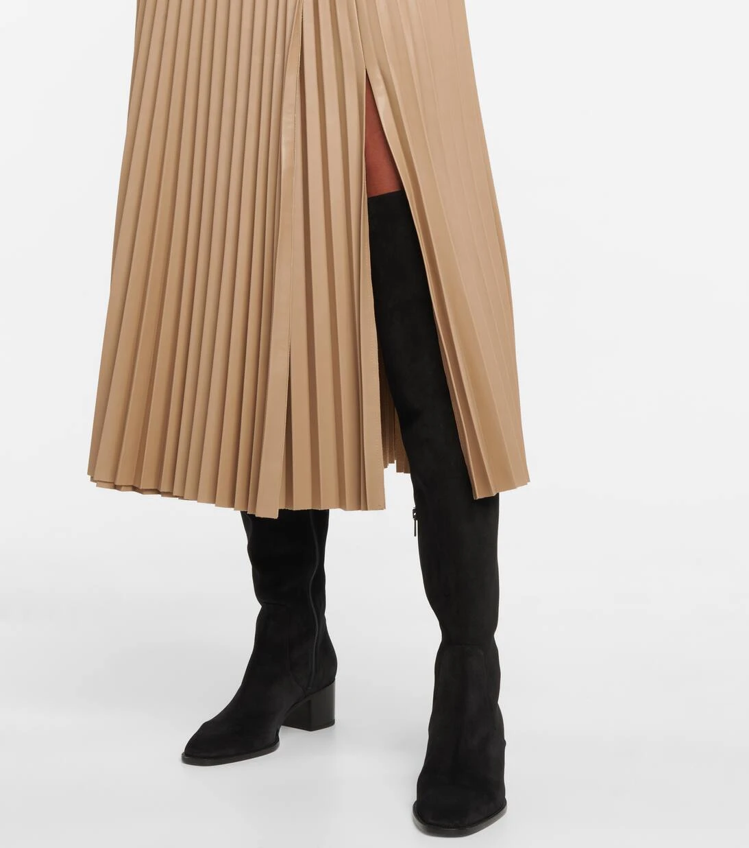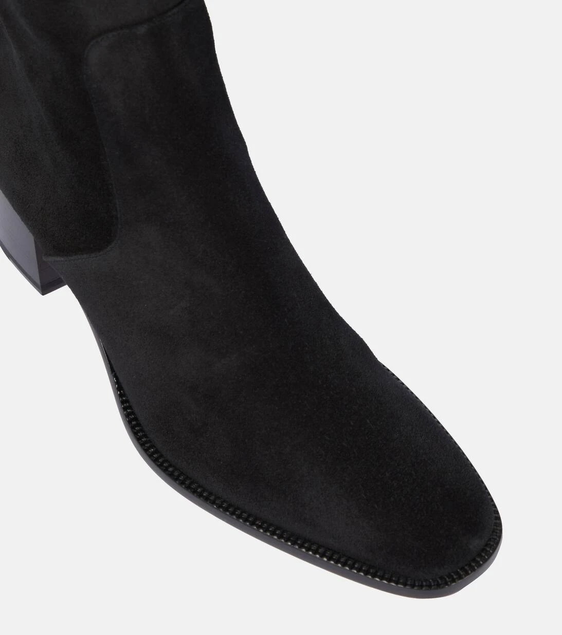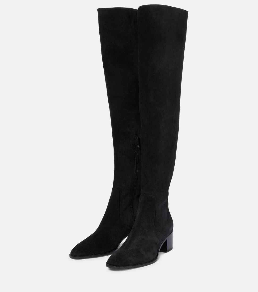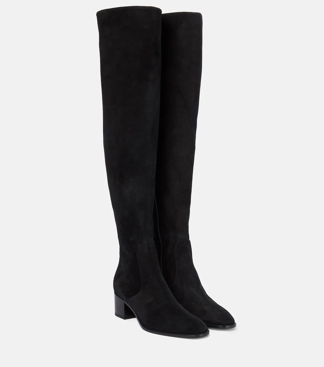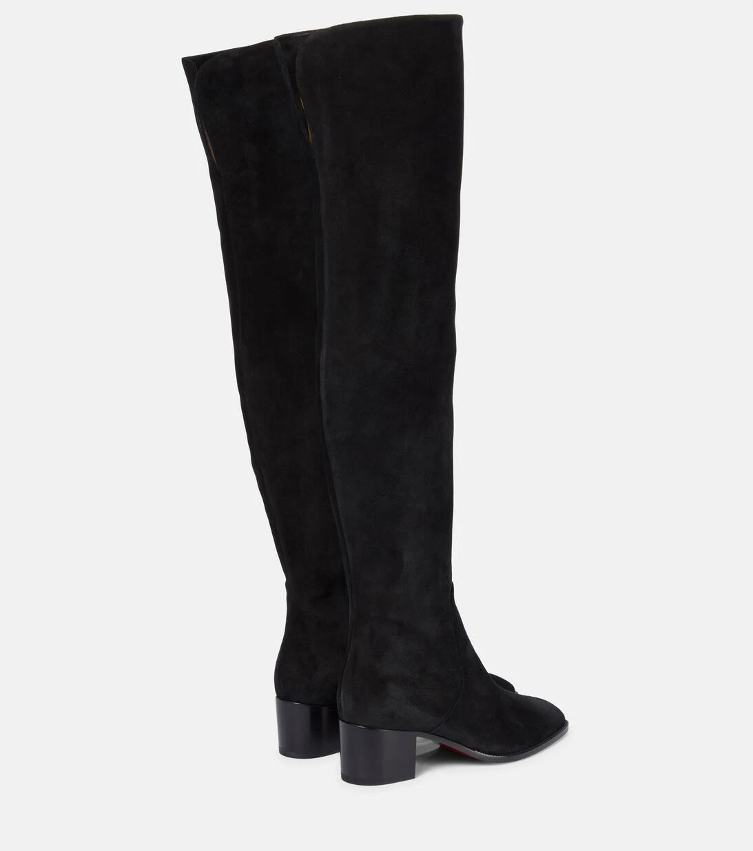 Die schwarzen Gazzellou Stiefel von Christian Louboutin sind aus weichem Veloursleder gefertigt. Sie ruhen auf niedrigen Blockabsätzen und reichen bis über das Knie.
