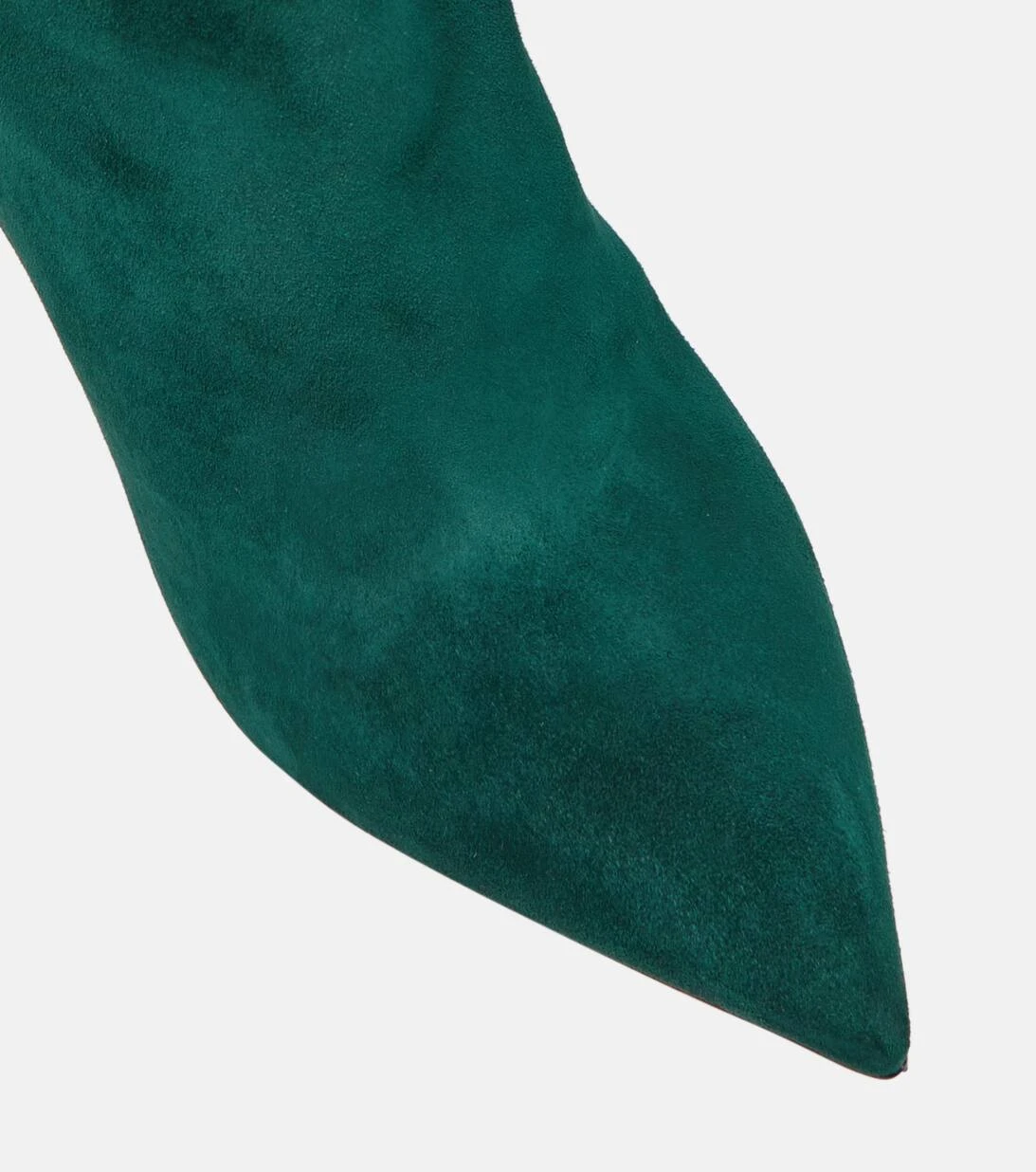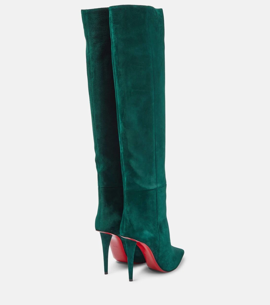 Mit den aus weichem Veloursleder mit gebürstetem Finish in Italien gefertigten Astrilarge Botta Stiefeln von Christian Louboutin setzen Sie ein Statement. Das tannengrüne Paar verfügt über die charakteristischen roten Sohlen und einen 100 mm hohen Stiletto-Absatz.
