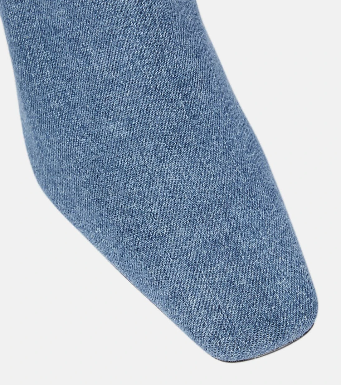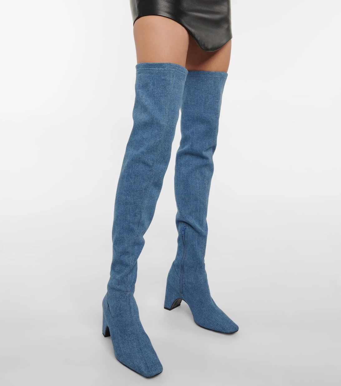 Diese Stiefel von Coperni bilden ein retroeskes Highlight in unserem Schuhschrank. Die Overknee-Silhouette aus blauem Denim wird von einer karreeförmigen Zehenpartie und schrägen Absätzen abgerundet.