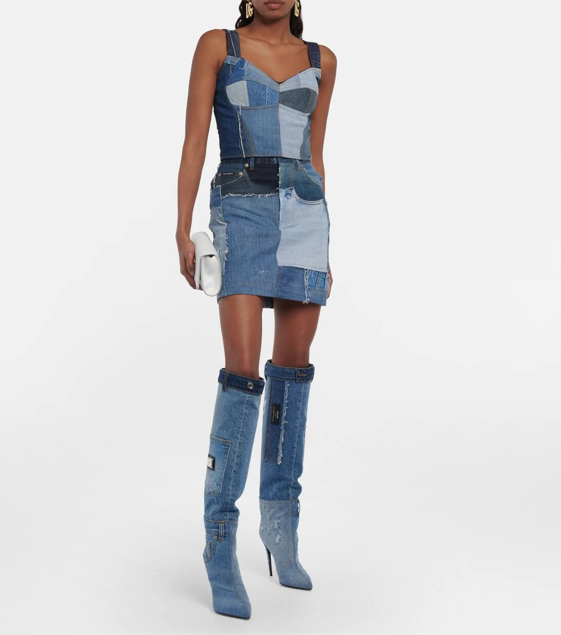 Dolce&Gabbana interpretiert seine charakteristischen Cardinale Stiefel mit diesem Design aus Patchwork-Denim neu. Das in Italien gefertigte Stiletto-Modell zeigt das Monogramm-Logo am Absatz.