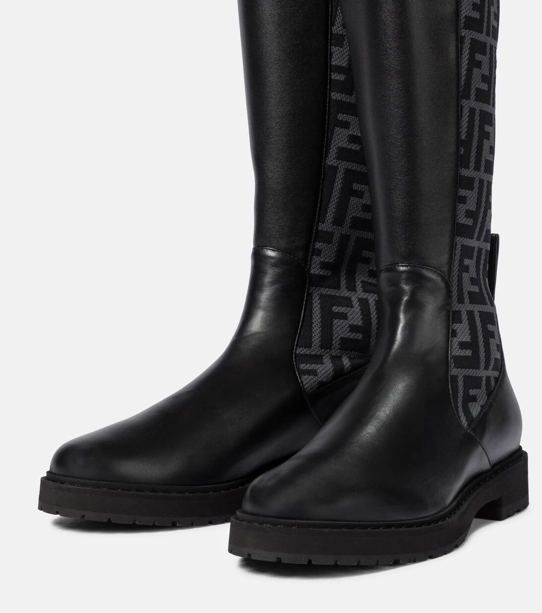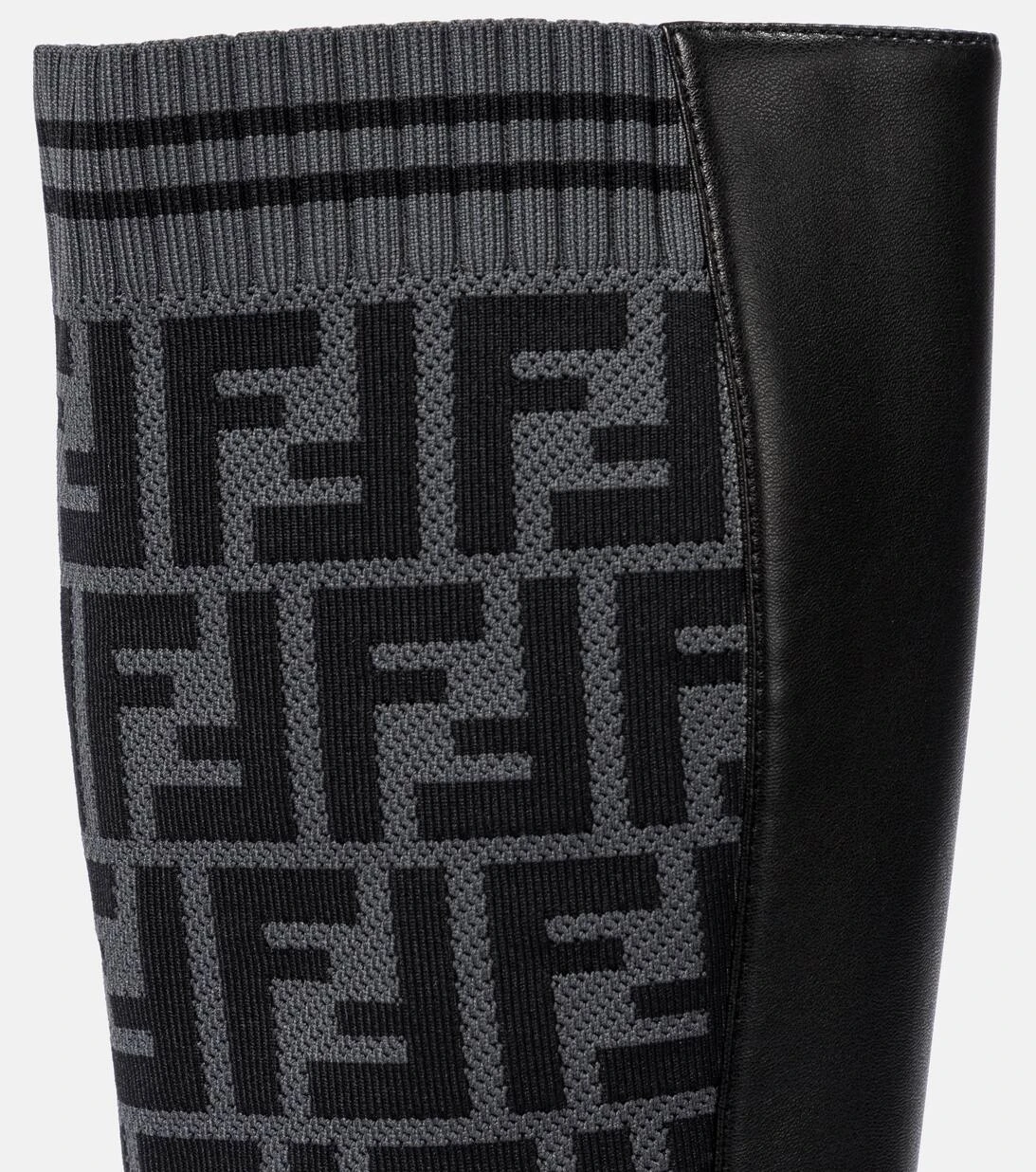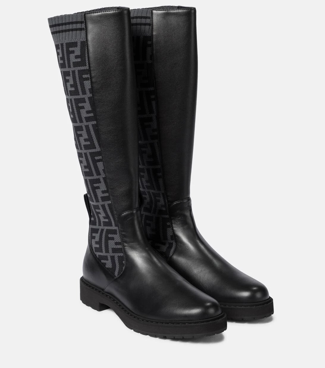 Als Inspiration für die H/W 2020 Schuhkollektion dienten dem Luxuslabel Fendi klassische Modelle aus dem Reitsport. Diese Stiefel wurden in Italien aus feinem schwarzem Glattleder gefertigt und mit einer breiten Profilsohle aus Gummi akzentuiert, die für festen Halt auf jedem Untergrund sorgt. Einsätze aus geripptem Strick, die zusätzlich das Monogramm der Brand zeigen, runden das Design ab. Wir kombinieren es mit einem passenden Mantel.