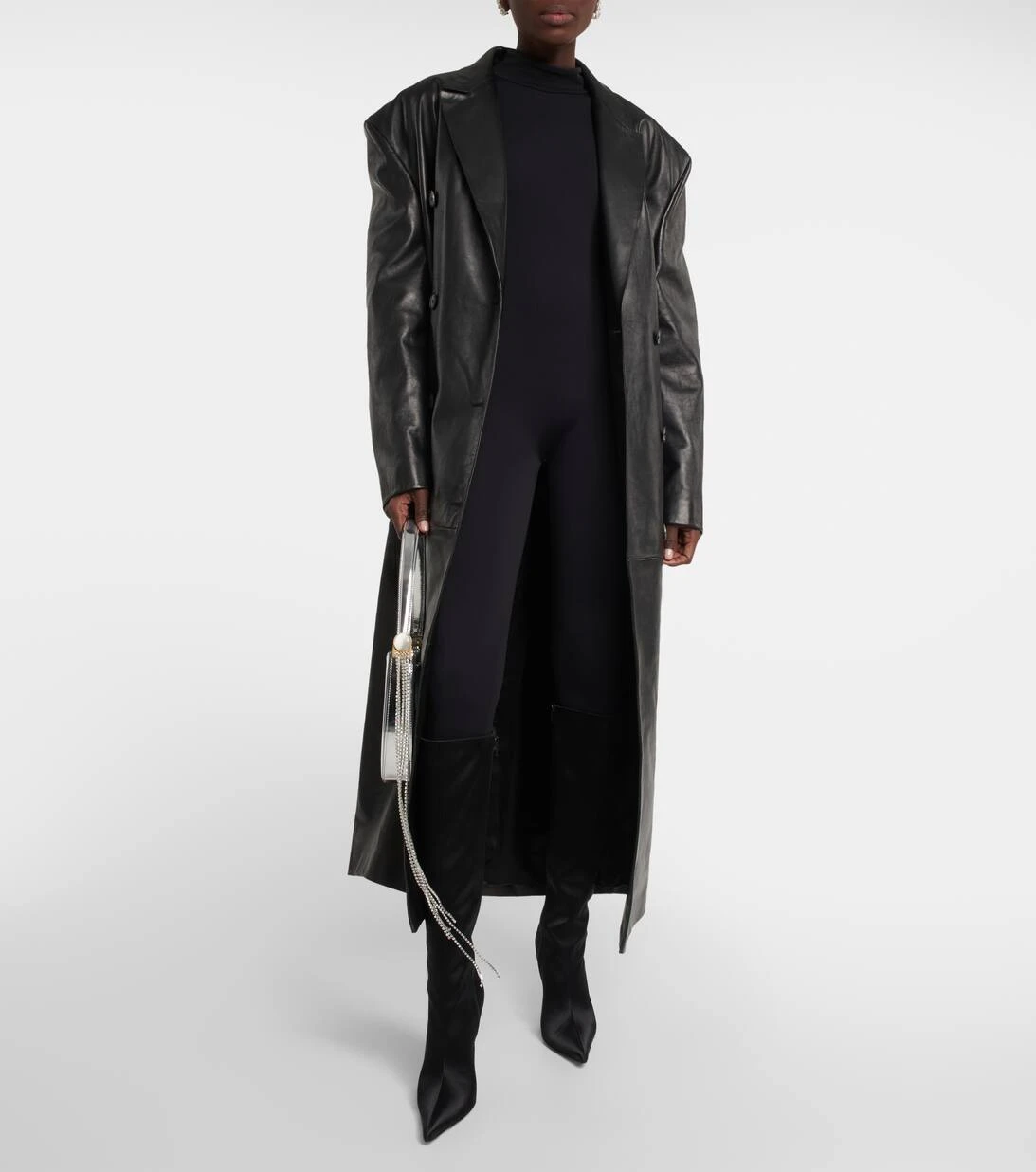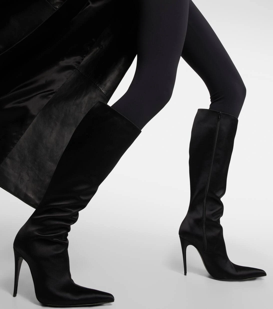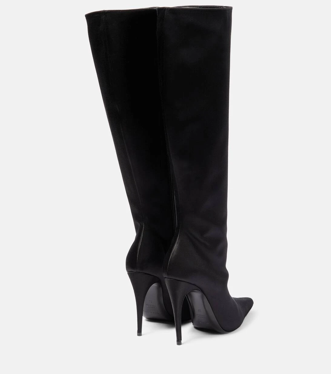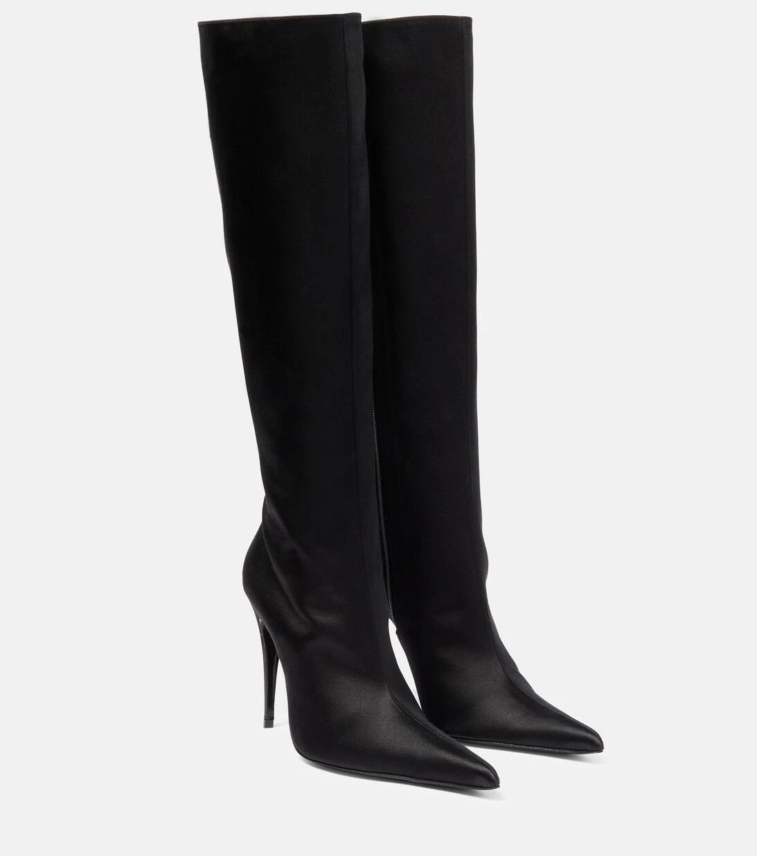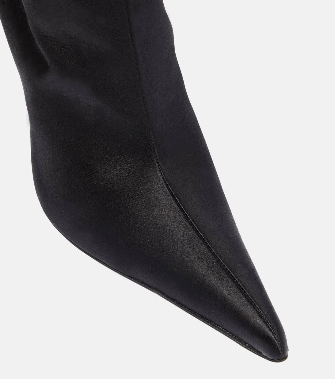 Schwarze Stiefel gehören einfach in jede Garderobe. Diese Variante von Magda Butrym präsentiert sich in einem Design aus elegantem Satin mit spitzer Zehenpartie und schmalen 110mm hohen Absätzen.