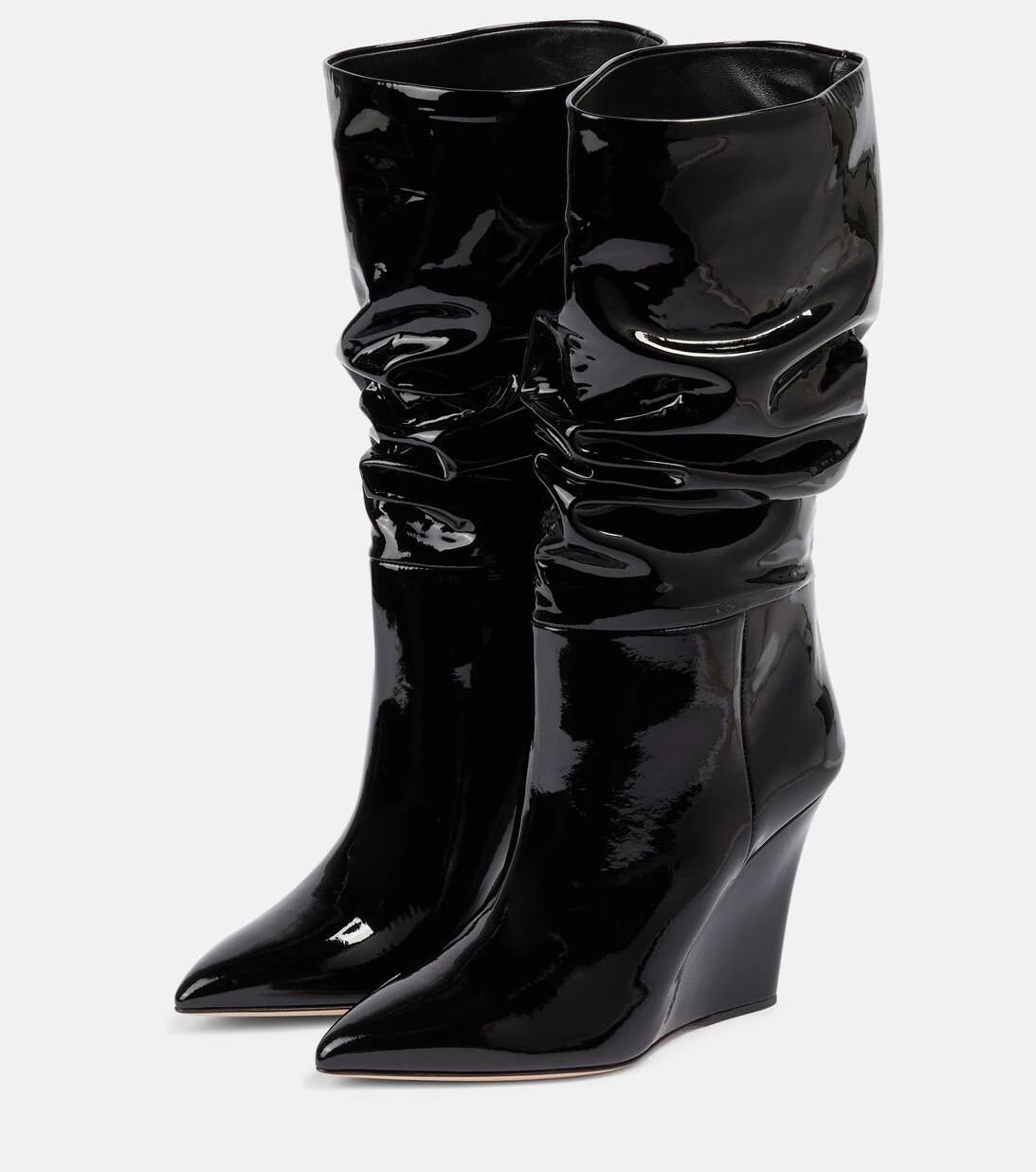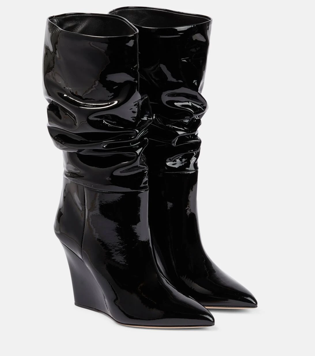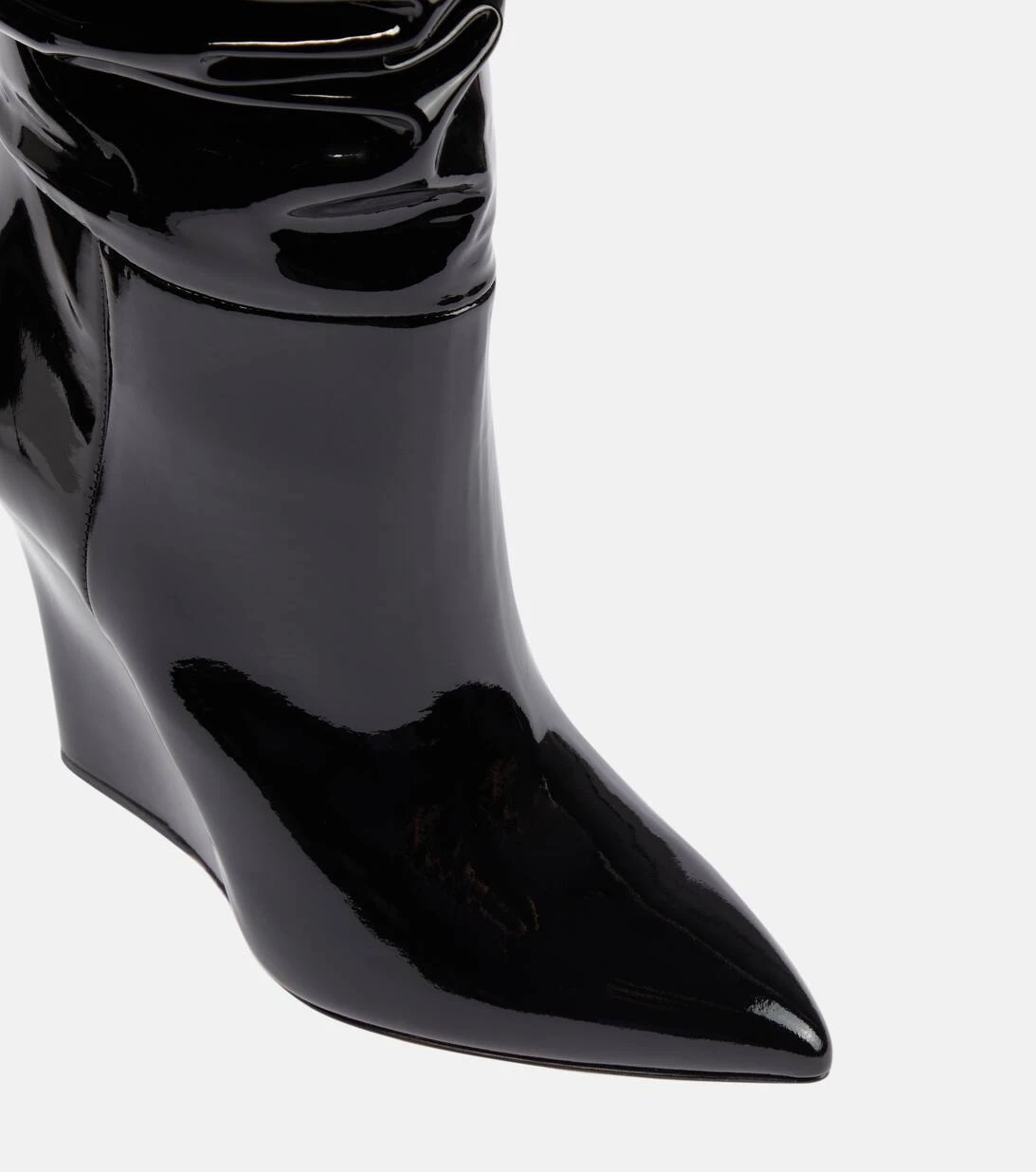 Legen Sie den Fokus Ihrer Ensembles mit den Wanda Slouchy Stiefeln von Paris Texas auf edle Schuhkreationen. Das aus glänzend schwarzem Lammleder gefertigte Design wird durch moderne, 95mm hohe Keilabsätze abgerundet.