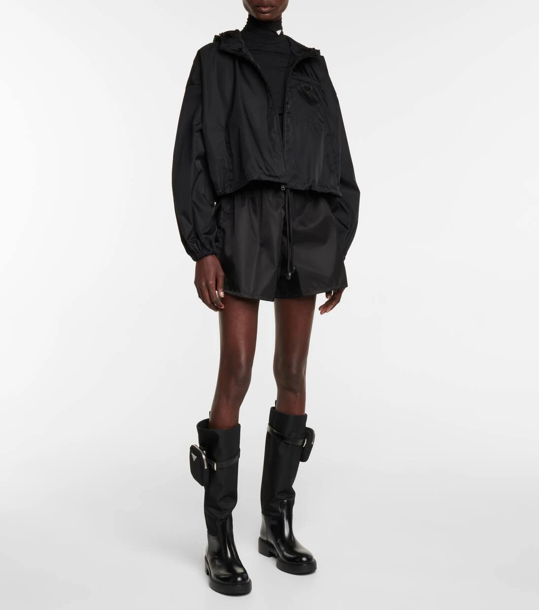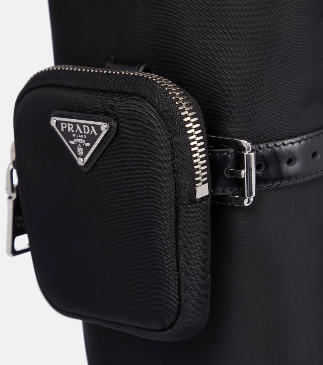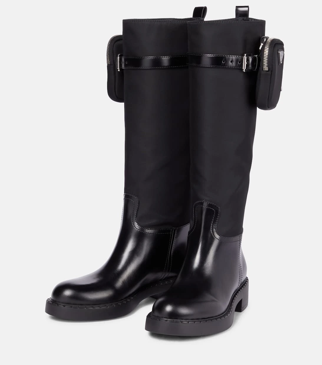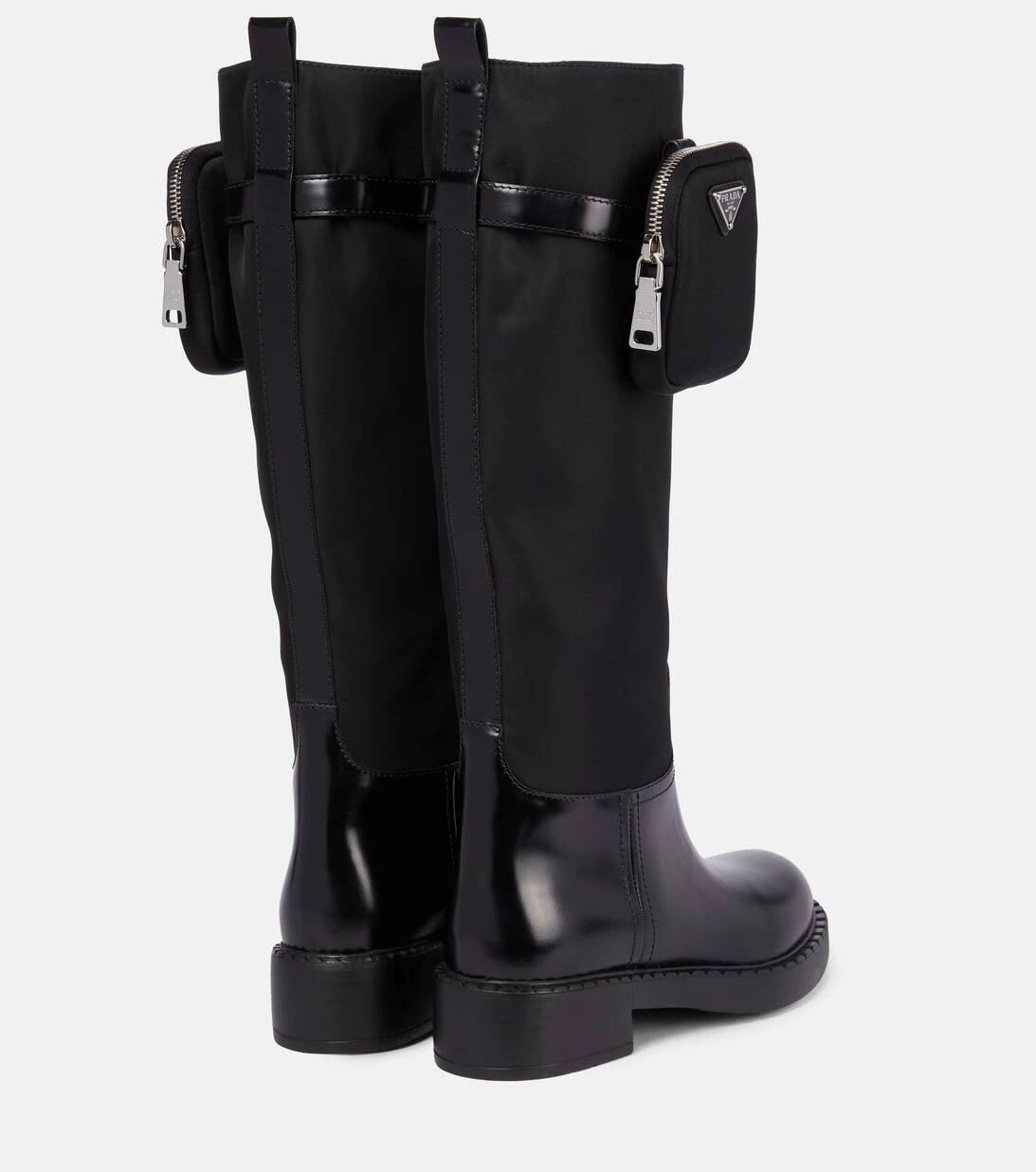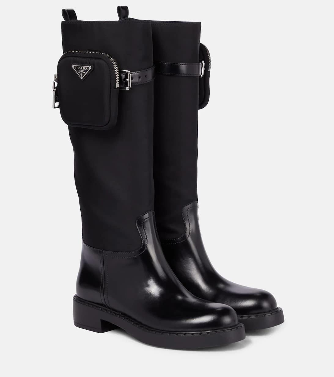 Setzen Sie mit diese markanten Stiefeln von Prada auf den modernene Utility-Style, der sich wie ein roter Faden durch die Accessoire-Kollektion der Brand zieht. Das Paar wurde in Italien aus einem Mix aus beständigem Nylon und glänzendem schwarzem Leder gefertigt und entlang des Schafts mit jeweils einer kleinen Tasche akzentuiert. Wählen Sie etwa eine passende Schultertasche der Brand dazu.