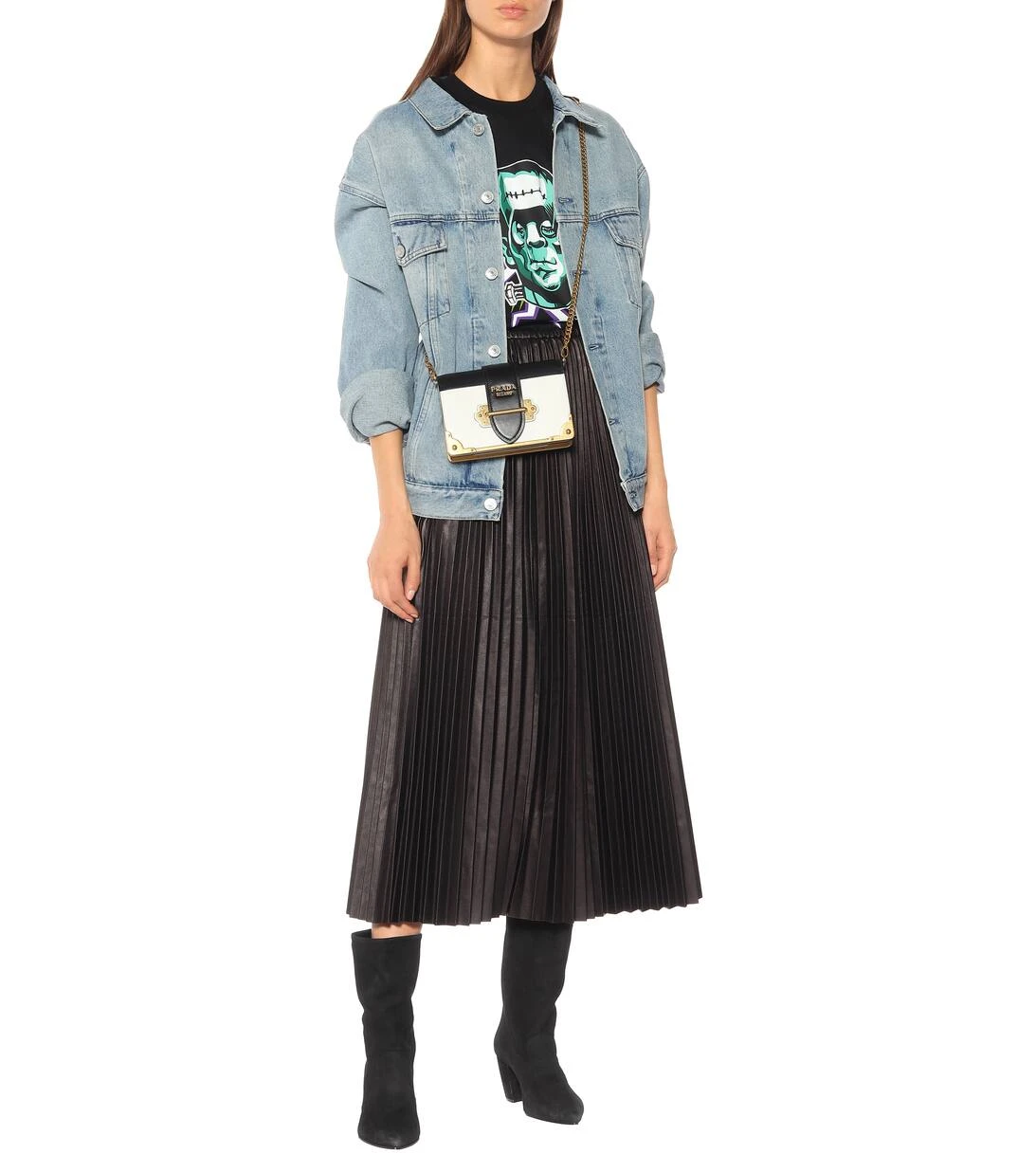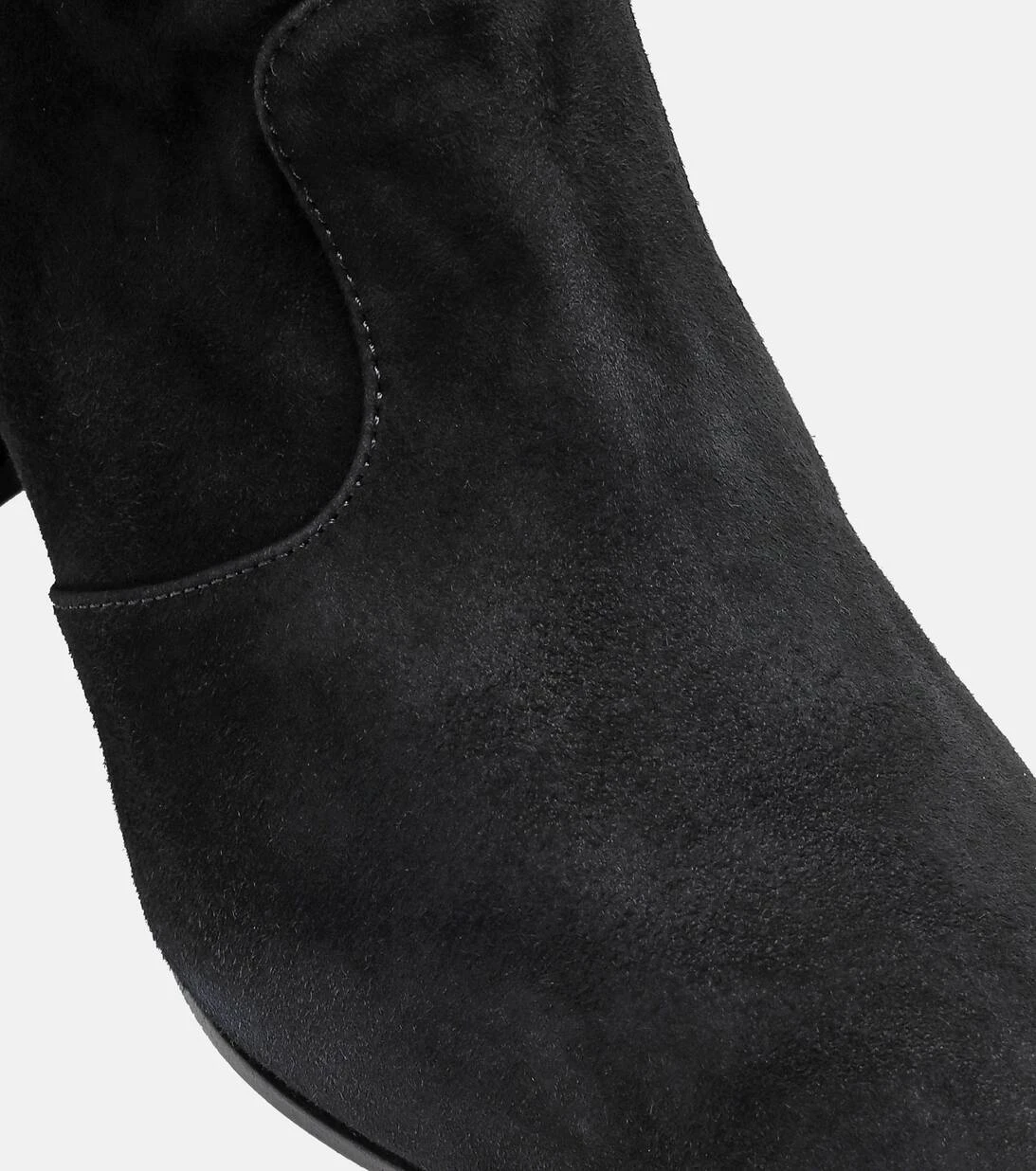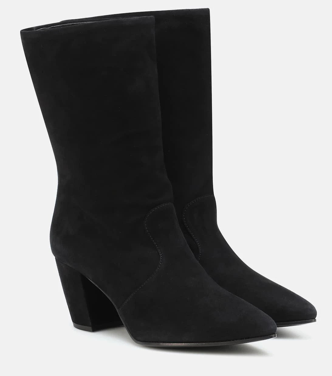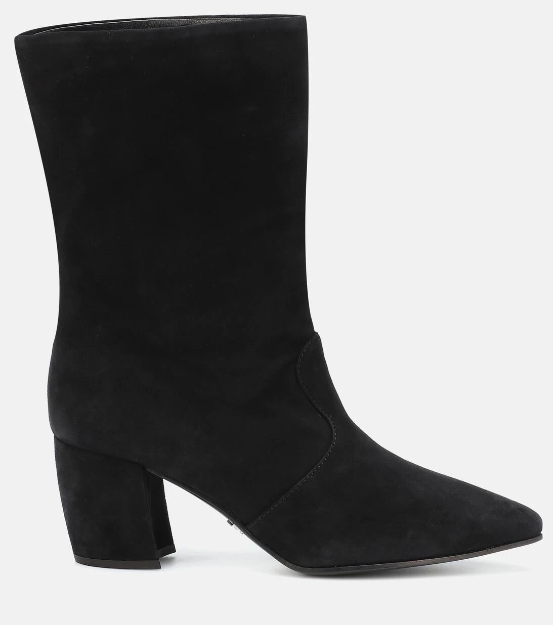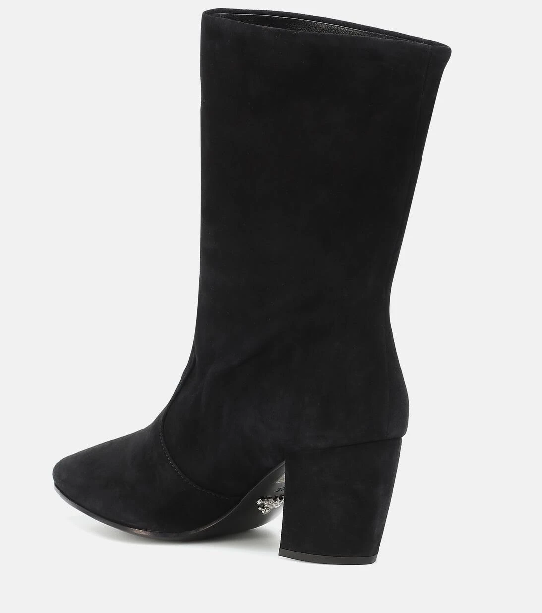 Die Stiefel von Prada wurden aus feinem schwarzem Veloursleder in Italien gefertigt und mit einer spitz-zulaufenden Kappe versehen sowie mit einem Blockabsatz abgerundet, welcher für besonderen Tragekomfort sorgt. Mit einem Kleid des Labels sowie einer kleinen Handtasche gefällt uns dieses Paar besonders gut.