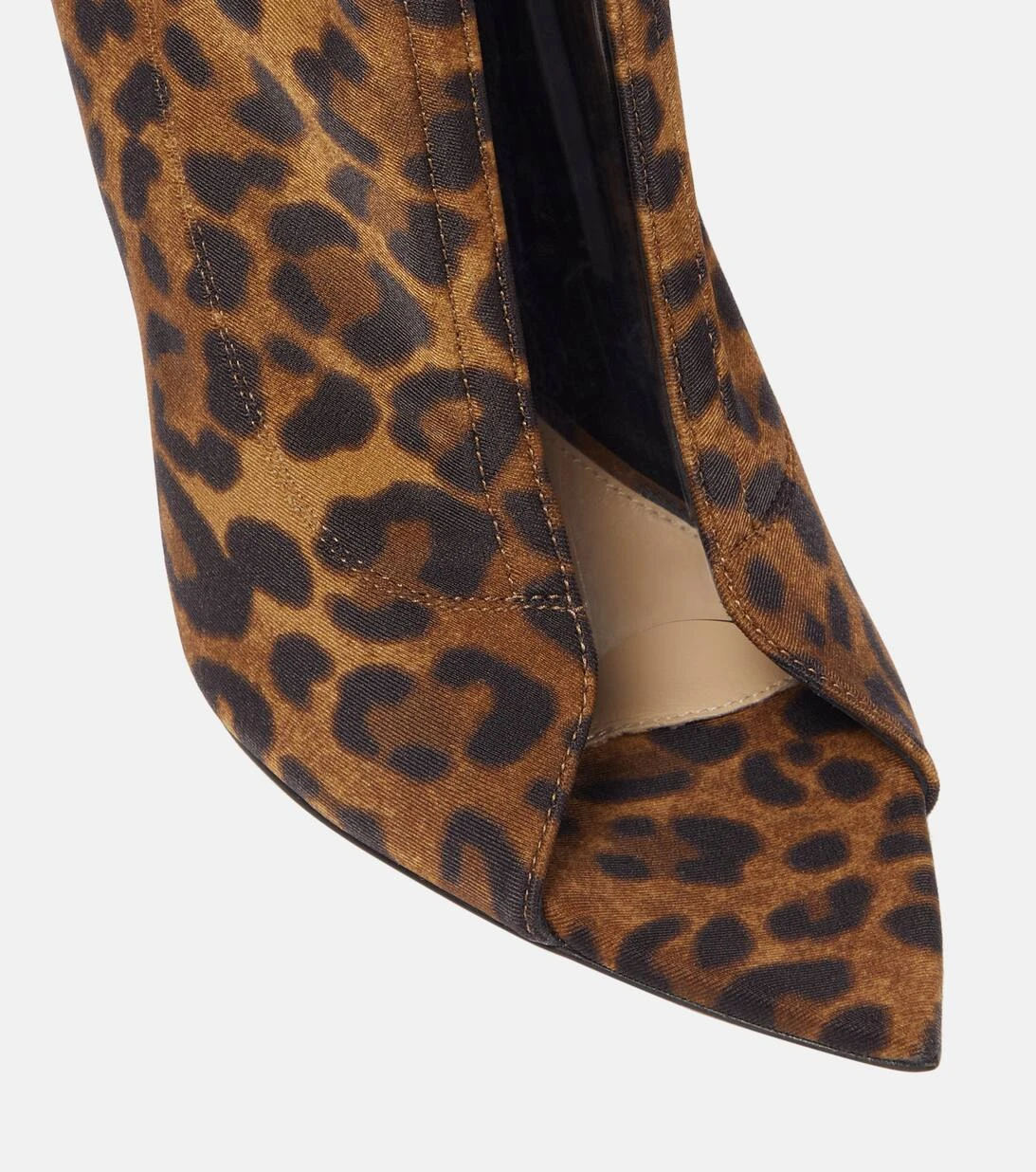Die Hiroko Stiefel von Gianvito Rossi sind mit ihrem 105 mm hohen Stiletto-Absatz und den Plexiglas®-Einsätzen der Inbegriff von Glamour. Das aus einem mit Leopardenmuster bedrucktem Stoff gefertigte Paar zeigt sich in einer sockenähnlichen Passform mit einer offenen Peeptoe-Zehenpartie.