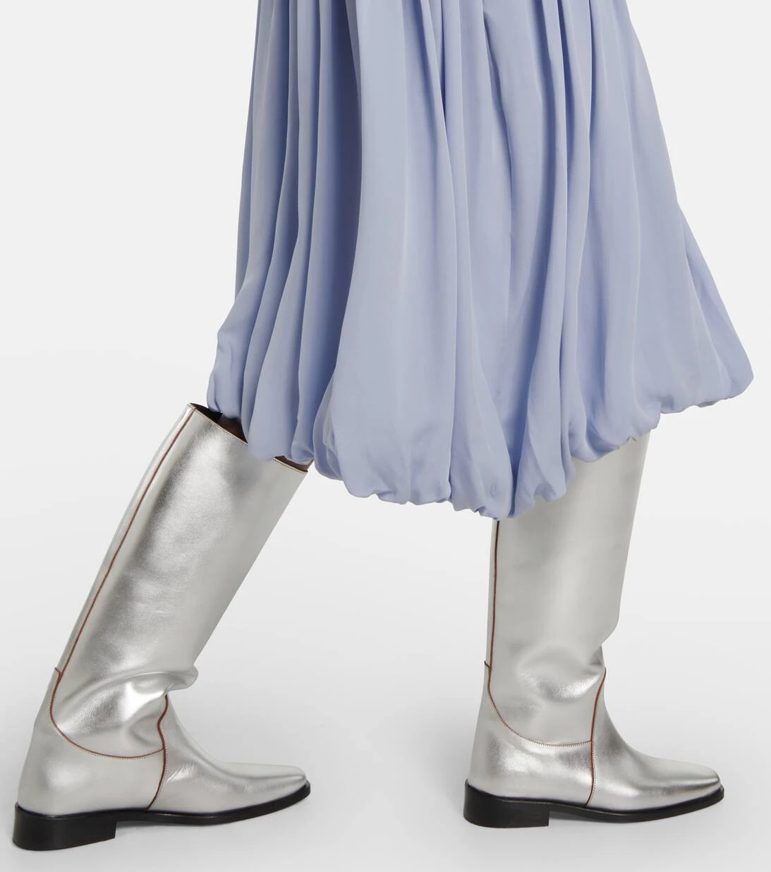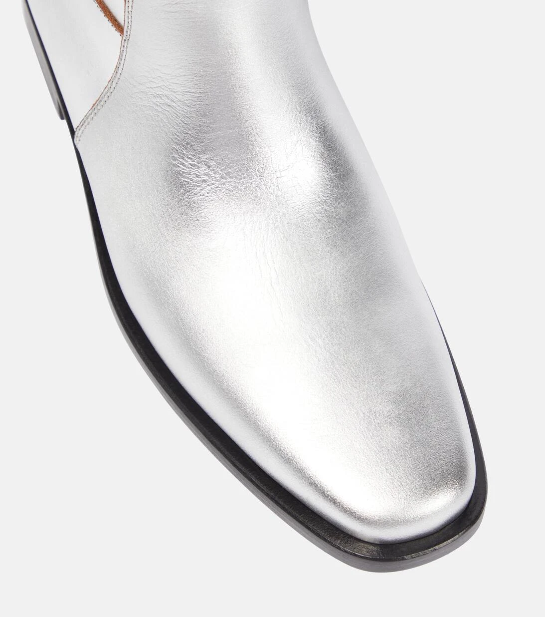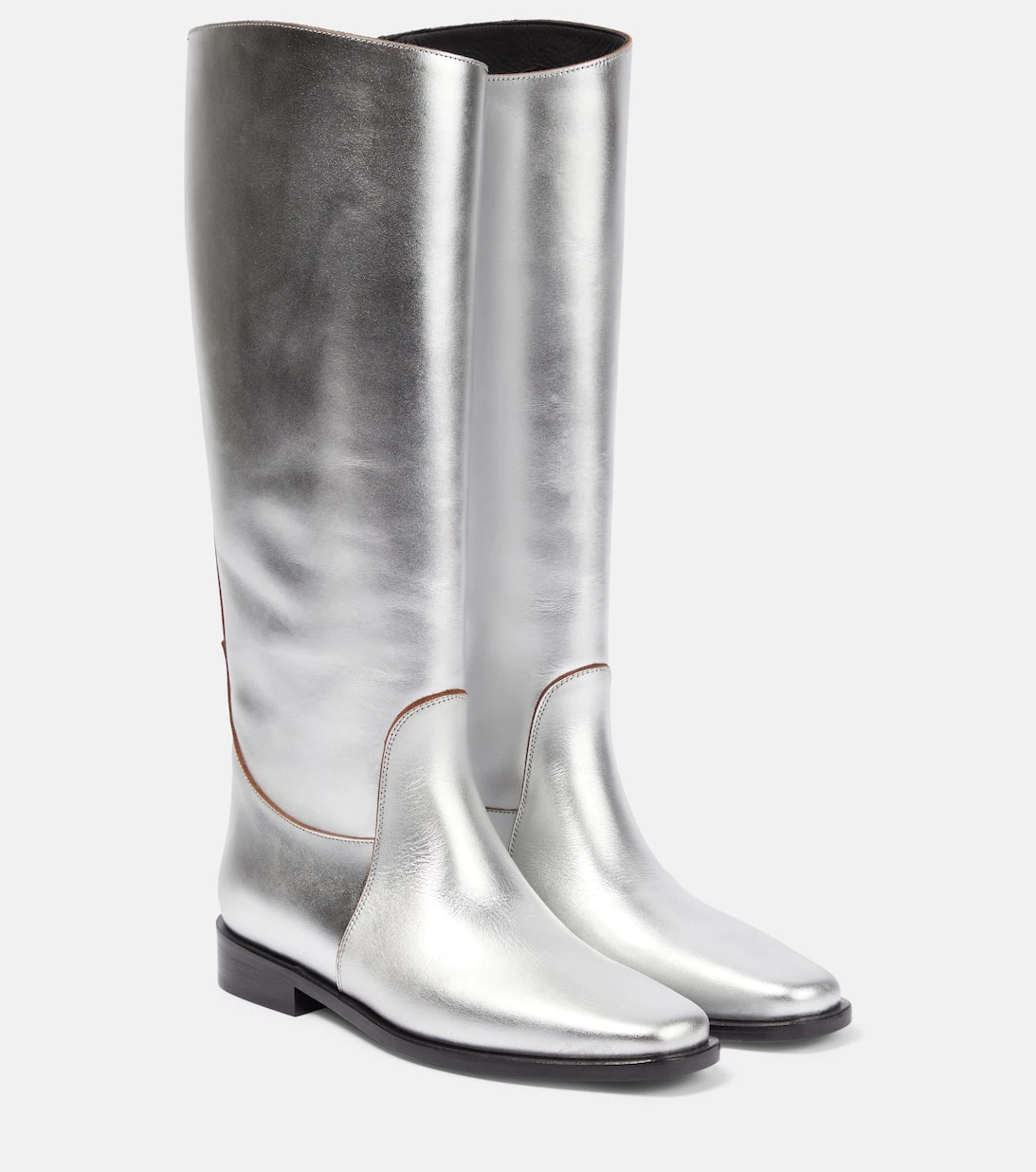 Ergänzen Sie Ihre Schuhkollektion um die vielseitigen Wooster Stiefel von Khaite. Das in Italien aus auffälligem silberfarbenem Leder gefertigte Modell hat ein vom Reitsport inspiriertes Profil, eine eckige Zehenpartie und niedrige Absätze.