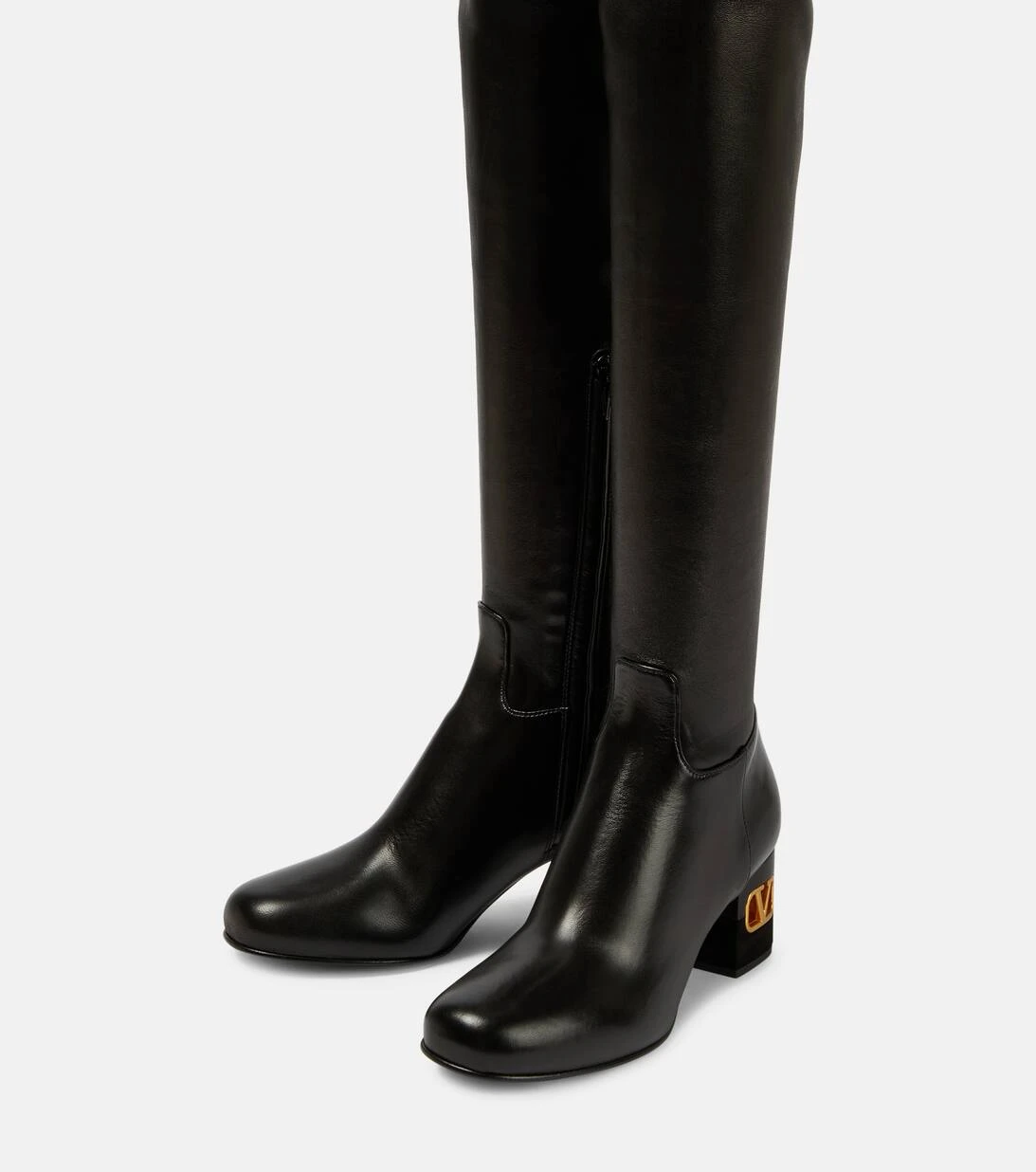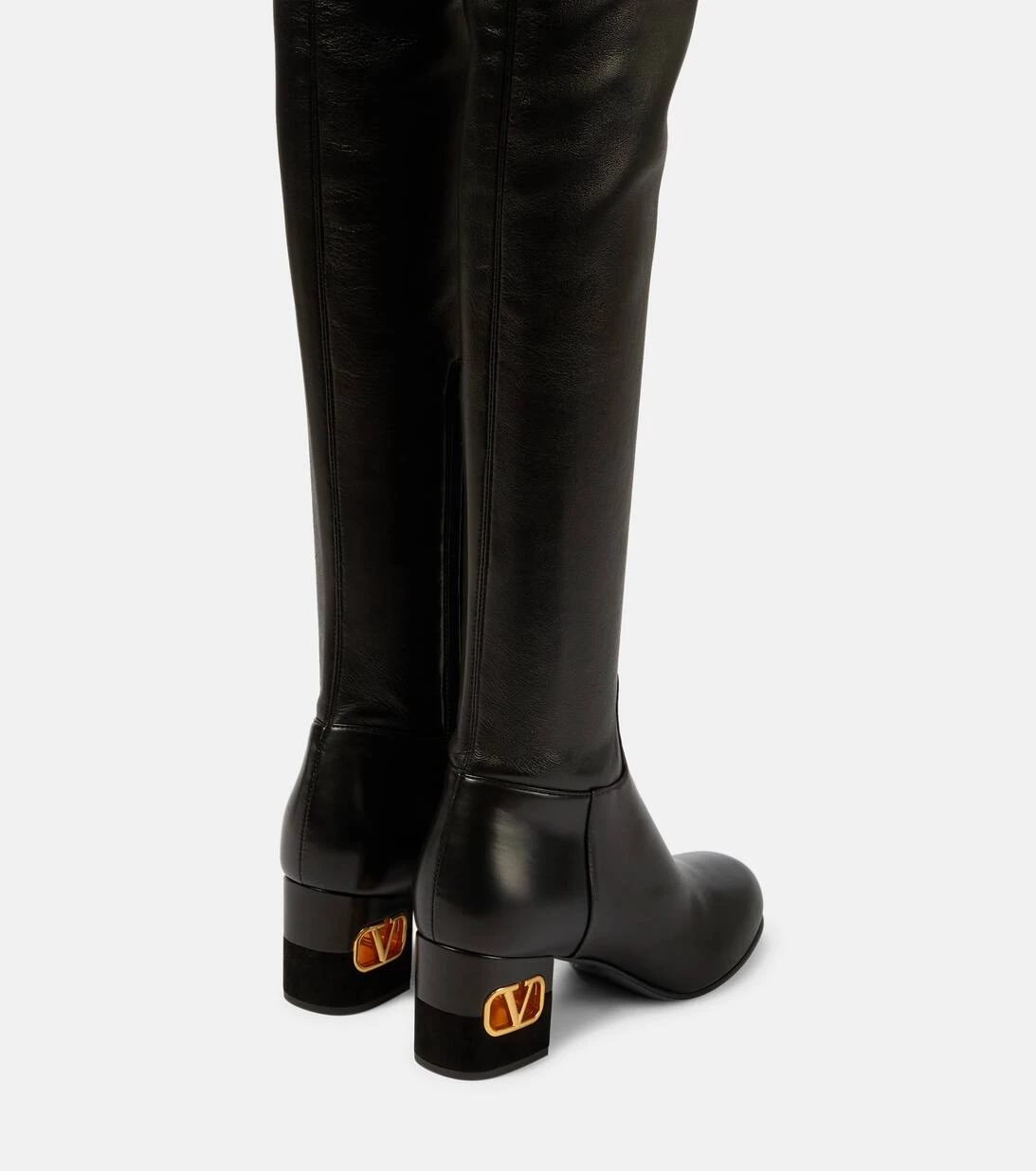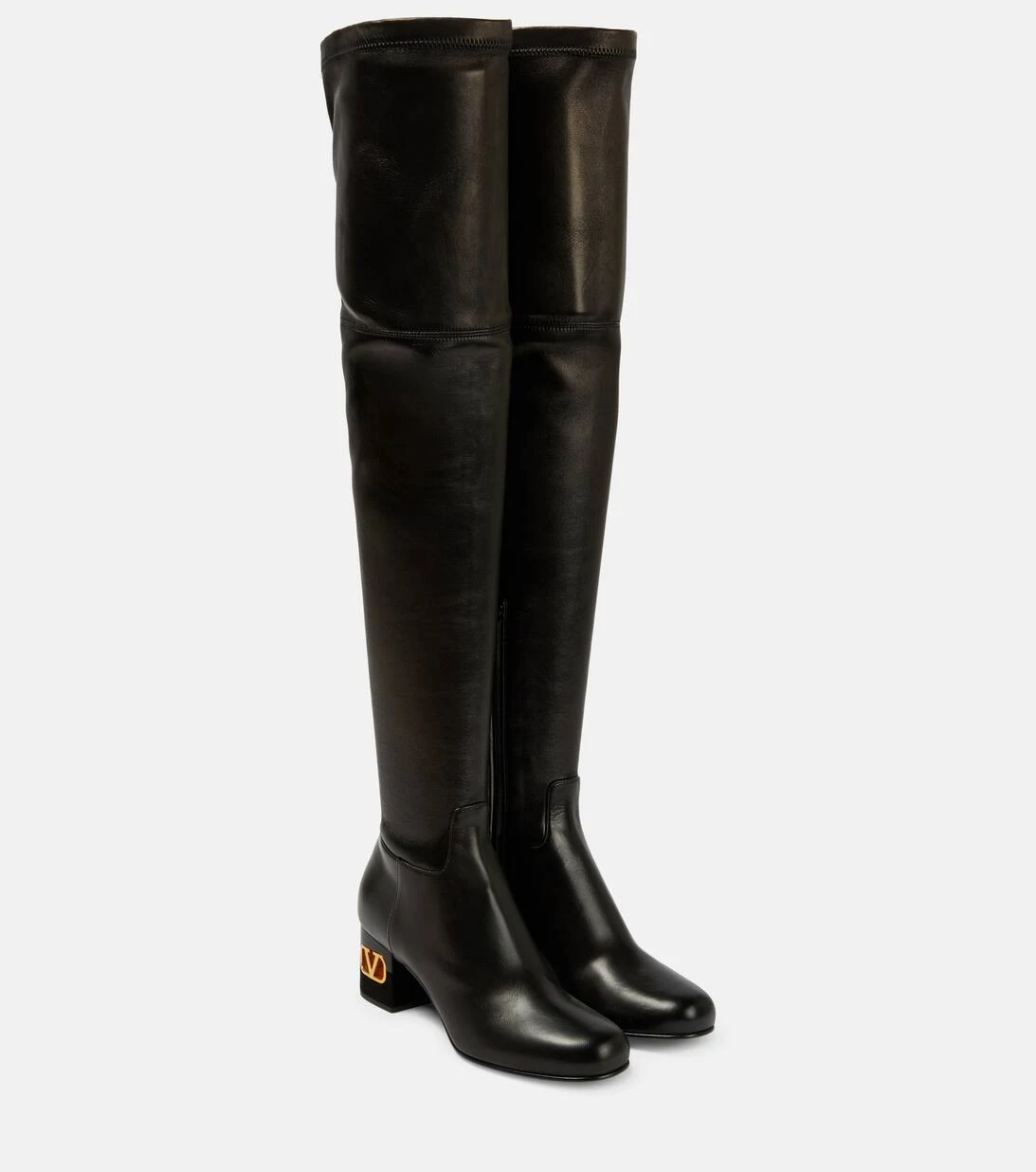 Zeitlose Styles sind das Markenzeichen von Valentino Garavani – genau wie diese in Italien aus glattem, poliertem Leder gefertigten Overknee-Stiefel. Die schlanke Silhouette wird an den Blockabsätzen durch goldfarbene VLogo-Hardware abgerundet.