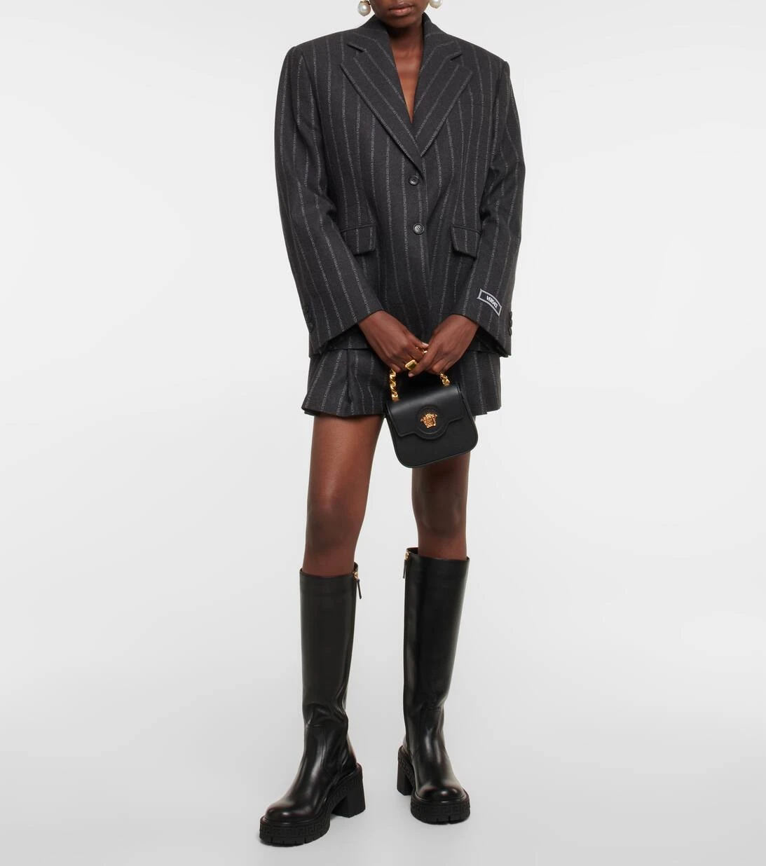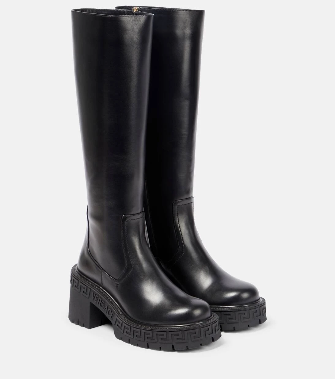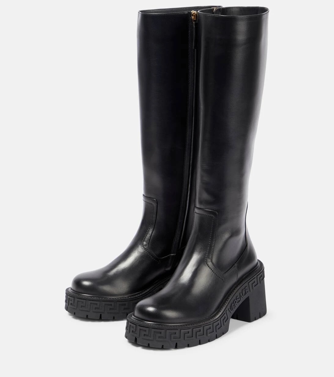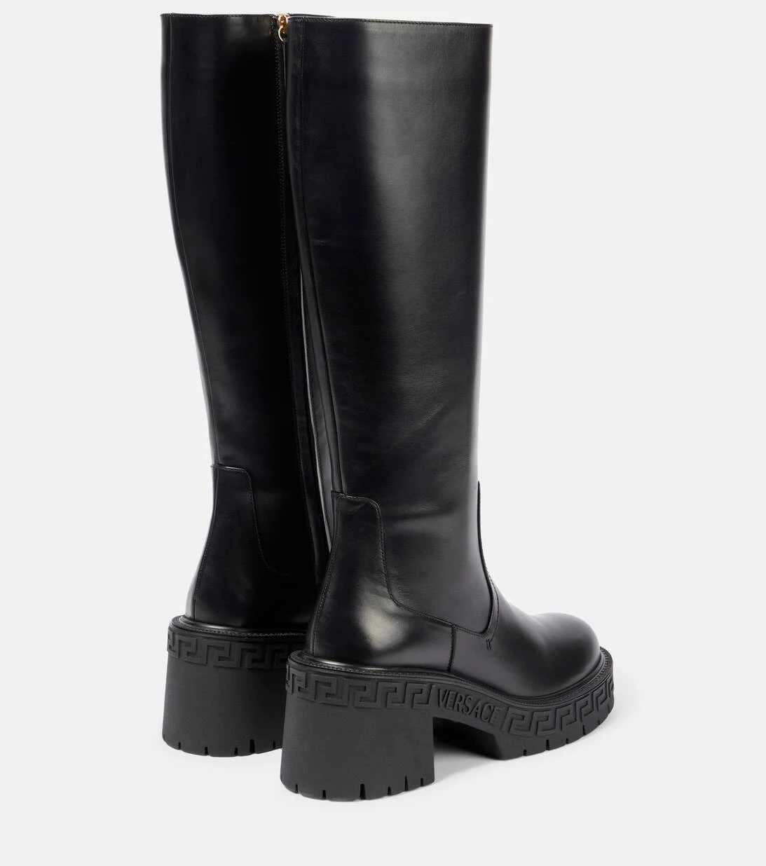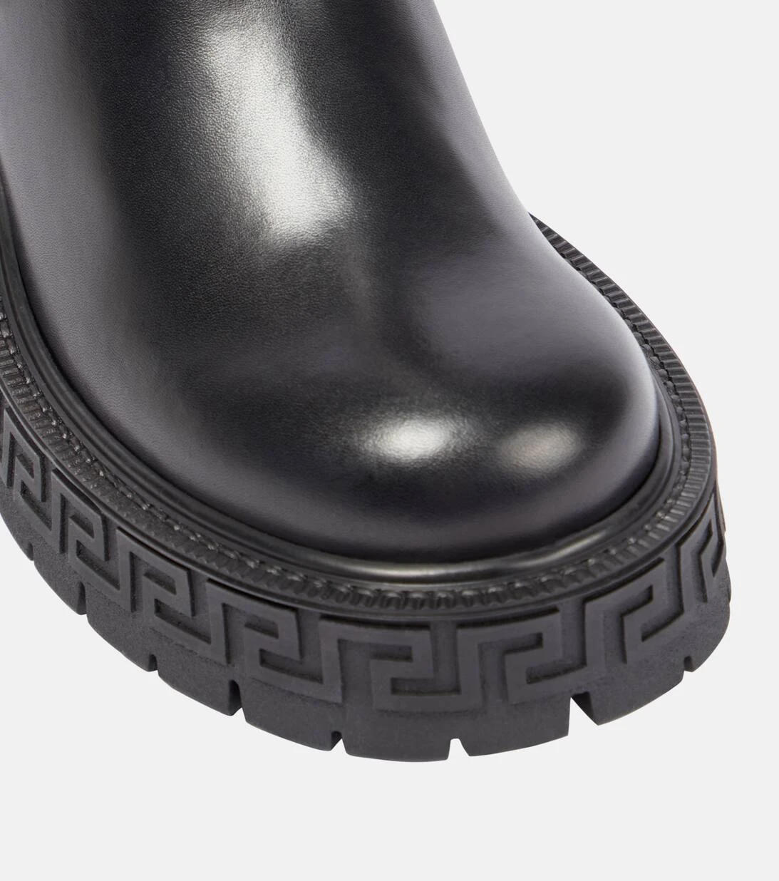 Dies Greca Stiefel von Versace aus glattem Leder sind an den Gummisohlen mit dem Logo gekennzeichnet.